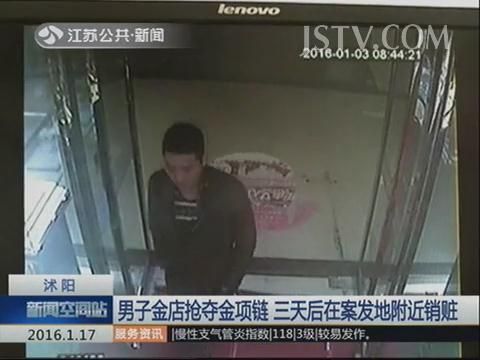 近日,宿迁沭阳警方抓获一名在金店抢夺金项链的男子,这名大胆的男子抢了金项链后,仅过了三天竟然在案发地附近的另一家金“销赃”。