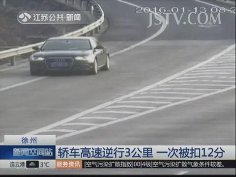 奥迪轿车倒车过程中一把拐进了匝道,随后在匝道内继续倒车。整个过程持续大约5分钟,逆行约3公里,期间有多辆桥车与其对向擦肩而过,十分危险。最终轿车倒回匝道后从反向桥梁驶下,往徐州方向驶来,民警随即在出口将轿车拦下。