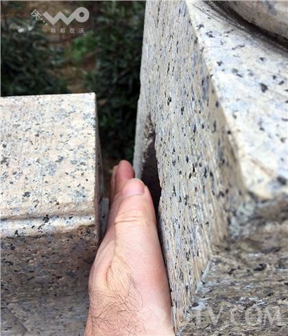 昨天下午,笔者骑车由东向西经过汉中门大桥,看到西引桥北侧右边大理石栏板东端与立柱分离严重,笔者试了一下,能插进一只手,榫头完全脱出,目前仅靠一端的榫头连接。