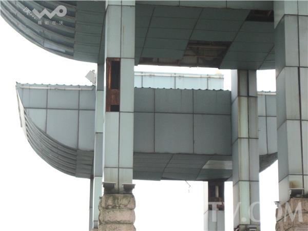 近日,有不少市民称南京江北大道边的六合沪江商贸城的门楼破损严重,存在安全隐患。荔枝新闻网友看到此商贸城的门楼约8米高,由于长期得不到维护,目前腐蚀破损严重,多处装璜材料腐烂脱落。这里每天有大量人员前来购买商品,不少市民路过看到头顶的破损门楼总是提心吊胆,担心会有板材掉落下来。进入冬季,雨雪天气不断,如果不及时维护发生事故后果不堪设想,附近市民希望有关部门尽快进行处理,避免发生意外。