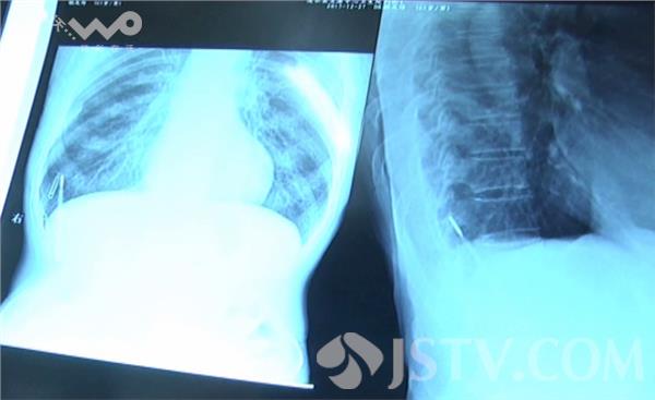 通过采访得知,患者是淮安涟水县红窑镇粱锅甄人,名叫嵇友传今年65岁。根据老人妻子自己描述,几年前家人在苏州打工,不幸发生工伤事故手指被电刨锯断,之后由老板送进附近医院做断指皮瓣植皮生长手术,等断指接回伤好回家后期间再没有外出,也没有因为什么病痛住过医院。就就在前不久,因为一件小事受伤到涟水县人民医院检查,在检查报告单上明显看到体内有异物。