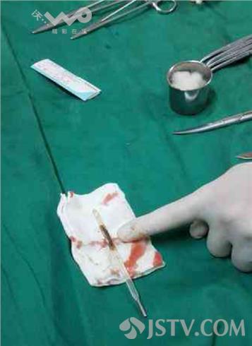 本来身体没有什么问题的嵇老汉听说这情况以后,陡然感觉不舒服,急忙找到了家里亲戚,涟水五港卫生院邵主任。邵主任在详细了解嵇老汉的病情以后决定就在五港医院给嵇老汉手术取异物。为确保万无一失院方从淮安请来一位专家主刀,手术非常成功顺利。当体温计从嵇老汉体内取出后,现场医护人员也十分震惊。