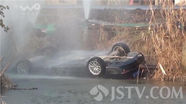 1月19日下午3点左右,在盐城射阳县四射线公路合德镇耦耕办事处境内,一辆行驶中的豪华轿车在紧急避让一辆摩托车时,方向过猛,在撞坏主供水管道阀门后翻入河中,所幸驾驶员及时逃离车辆。