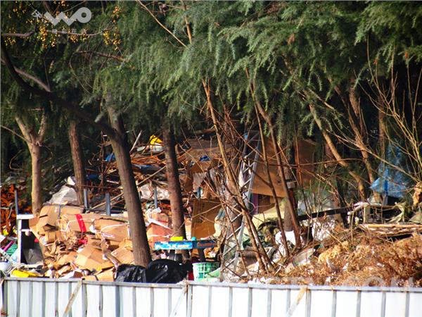 这处废品收购站位于南京光华门宁芜铁路沿线一片树林中,搭着违建房。长期将各类废品随意堆放在树林中,显得十分脏乱差。当日下午,荔枝新闻网友在现场看到一个巨大的废旧收购站“藏”在铁路南侧一片树林中,收购站大门敞开,小院内,泡沫材料、废纸壳堆成了一座“小山”,不远处还放置着一个台秤,外面随处可见其的杂物,路边还拉着一道黑色网。几名操着外地口音的人正围着一起闲聊,晒着太阳。据其中一个老板模样的人介绍说,他是从外地来的,在此经营废品收购已经有十多年了。由于生意不好,一直堆在这,如今越堆越多,成了近百米的一条“废品带”。据介绍,他们每年要交铁路部门1万多元租金,但也没有看到有什么人来管理,附近居民表示,这个废品收购站又脏又乱,实在不忍直视。