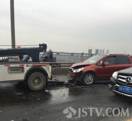 今天(1月20日)早上8点左右,南京长江大桥(北大堡)段,发生多车相撞交通事故,事故车辆都有不同程度受损。对桥面上南北双向车辆通行均受到影响。警方提示,天气寒冷,桥面容易结冰,驾车一定要谨慎慢速,避免刹车不及发生追尾。