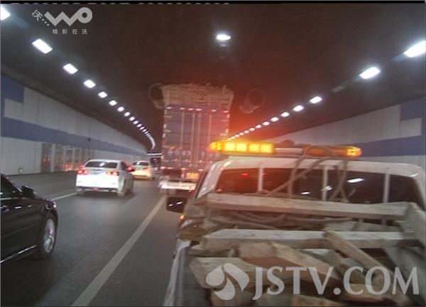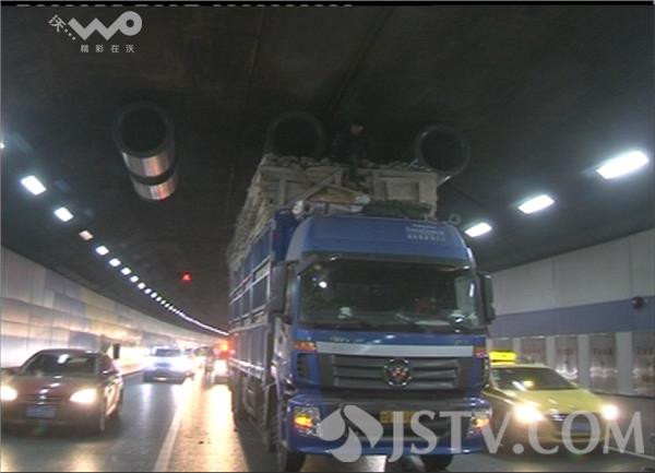 1月19号晚8点半,在南京九华山隧道由南向北方向,一辆满载着木材的货车违规闯进隧道,但由于木材超高,被卡在隧道内的通风口,造成了隧道拥堵近两小时。