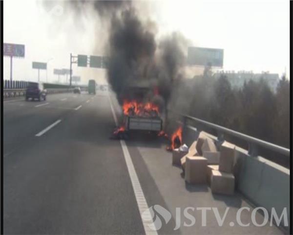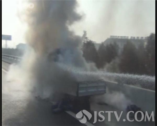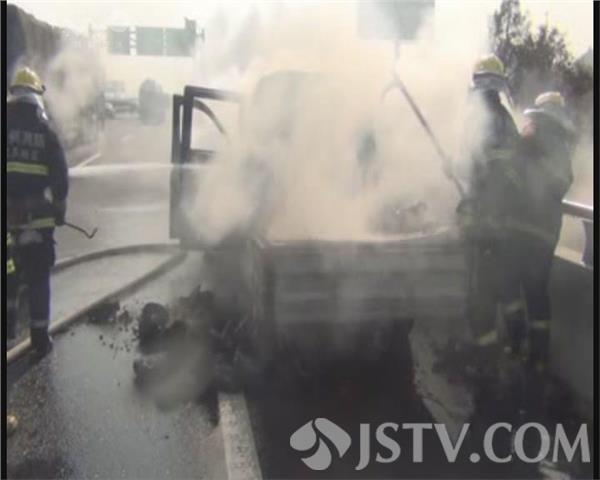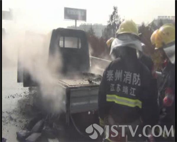 1月19日11点30分许,泰州靖江市消防指挥中心接到报警,称江阴大桥靖江南出口附近一辆南通籍小货车突然起火,车上人员已经下车安全疏散,当地消防接警后,立即前往现场处置。