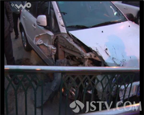 昨晚(1月20日)5点40分左右,在南京市鼓楼区长江新村40号北门附近,发生了一起连环交通事故,一辆轿车在出小区时突然失控,连撞三名行人和两辆汽车,把小区锁着的铁门也撞倒,推出去数米远,最终撞上路边护栏停了下来。