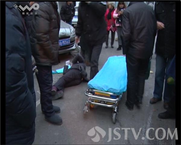 记者赶到时,事发现场聚集了不少围观市民,在几十米长的小区路上,躺着三名伤者,几人均伤者不轻,倒在地上,无法起来。