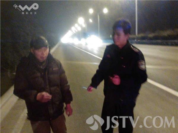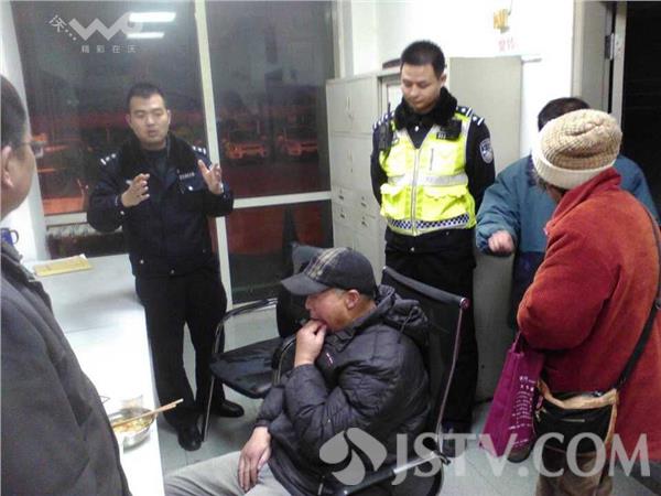 原来1月16日20点时许,外面寒风凛冽,有些许小雨飘落,高速二大队民警陈飞、肖安东和辅警肖建在巡逻至北向南马群路段时,在昏暗的灯光中隐约看到一个人影在快车道走动,由于路面湿滑气温低,部分路段已形成冰渣,车辆难以有效制控。情况危急,民警赶紧下车查看情况,看到一名七旬老人在寒风中蜷缩着前行,赶紧将他带到路边询问情况,可对于民警的提问老人却没有反应,只是瑟瑟发抖,于是民警先行将老人带上警车带回大队。带回大队后,民警给老人倒上了热水、打来了热饭菜,等老人稍微暖和点之后,耐心地询问老人的情况,可是获得的有效信息却也不多,只从老人支离破碎的言语中得到了几个名字。于是民警利用警务平台展开地毯式地找寻,终于在报警平台中找到了一条走失报警信息与老人的名字相符,原来老人在16号上午与家人失联,已经独自在外行走了9个多小时,一直从鼓楼区华侨路走到了绕城公路马群路段。在与老人的家人取得联系后,大约半个小时老人的老伴、妹妹和侄子来到了高速二大队,他们为表达感激之情就发生了上述的一幕。最后高速二大队副大队长李庆杰又给他们做个温馨提示,要他们在老人的身上用针线缝上姓名和联系方式,以防老人再次走失,方便好心人联系。