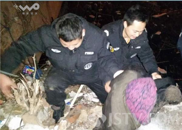 昨晚8时许,古城南京迎来了第一场暴雪,就在这个雪花飘零的深夜,在刺骨的寒风呼啸中,浦口区西门桥下上演着温情的一幕,浦口警方出警民警沈功成将一名被困河水淤泥中的82岁老妪成功解救,并为其找到了家人。而此时距离小民警小沈上一次冒着零下5摄氏度的严寒跳入刺骨的水中勇救老人仅仅过了一天。风雪夜,民警接警称一老人被困河中快支撑不住了 1月20日8时30分时许,寒风狂裹着雪花,南京市公安局浦口分局特巡警大队值班民警沈功成带着警辅人员在珠江街道西门桥附近巡逻时,接到群众报警称发现一名七、八十多岁的老太太被困在桥洞下河水淤泥中,无法自己脱身,浑身冻的瑟瑟发抖,感觉快要不行了。民警小沈当即一边拨通报警人电话确认位置,一边开车往事发地赶去。可是由于天黑,且报警人将不清楚具体位置,民警在搜寻西门桥下多处位置后,终于在河对岸桥底下发现了报警人所称的受困老人,顺着电筒的光源,沈功成看见一个看上去年纪很大的老太太双腿陷在河水下的淤泥中动弹不得,因为天冷水只是没过老人小腿,可由于水实在太凉老人已经快支撑不住,全身一个劲的大幅度颤抖,小沈在联系120救护车后大声向老人呼喊,可老人怎么也不回答。民警毫不迟疑冲入河水淤泥中彰显为民深情沈功成怕老人有什么闪失,不顾河水深浅就往河中冲去,河沿的水虽然不深但淤泥却极为冰冷黏脚,一不小心就会滑到,小沈一边向老人大声呼喊打气,一边极力保持平衡向老人靠去,短短20余米的距离让人感觉是如此的漫长。就在民警快到老人身边时,老人支撑不住倒了下来,小沈见状一把抱住老人,并在一起下河的辅警帮助下前面抱住老人的腰部,后面抱住老人的双腿,一步一滑地将其带到河边,此时民警和辅警下半身衣服已经湿透,表面的水份已经结成了薄冰。雪夜中民警的身形显得如此高大。费尽周折民警寻到老人家人助其安全返家 民警将老人送到医院,经过救治在医院确定其没有任何问题的情况下,民警带老人到珠江派出所,端上热水后,轻松的与老人拉起了家常,以便从中获取有利用价值的信息。可是老人东一句西一句的与民警聊着,说着不着边际的话,貌似是老年痴呆。但是从这些零乱的话语中,经验丰富的民警还是拼凑出一点信息。老人在话语中多次提到一个地名和几个人名,一定是生活过或者有亲人在那里,于是民警多方打听,找到这个地方所在辖区派出所询问。开始否认,村子里有这样一位老人,并称也没有老人所提及的姓名。线索中断,民警再与老人进一步沟通,老人也提供不出其他有用信息,就在这时,派出所民警突然又打来电话,询问老人的特征,小沈详细描述后,派出所民警称这极有可能是前两天辖区居民来报警走失的老太太,随后联系到老太太家人确认,老太太“哎呀,就是我,我的老妈妈趁家里人不注意跑了出去,这会儿担心这大雪天别冻坏了......。”之后老太太的家人将其接走。看着老人安全返家,沈功成心里暖洋洋的,已然忘记了还在滴水满是淤泥的警服。