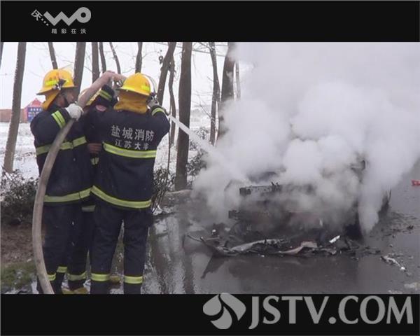 受到强冷空气的影响,1月21日凌晨开始,盐城各地普降大雪,由此引发的交通事故也逐渐增多,21日上午9时,位于盐城市老226省道通港大桥桥北,一辆轿车与另外一辆迎面行驶的面包车发生碰撞,轿车随即起火燃烧,司机发现险情及时报警求助。