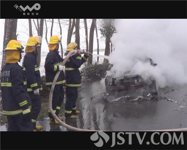 在起火的事故现场,雪还在不停的下,火苗从发动机部位开始猛烈燃烧,并喷射出两三米高的火焰,大火还从驾驶室部位蔓延,赶来的消防队员随机利用水枪对火势进行控制,在从右侧冷却邮箱后,对发动机部位的火点进行集中灭火。最终,经过10分钟的处置,火势被基本控制,但是轿车烧毁严重,整个发动机基本报废。