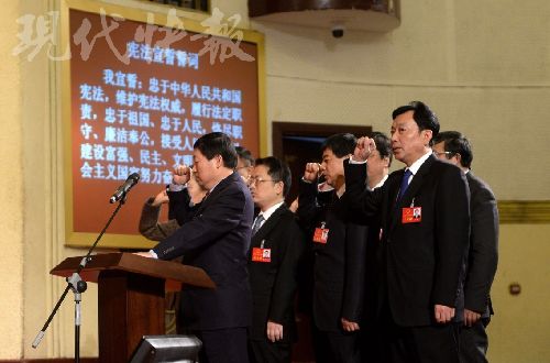 今天上午南京市十五届人大四次会议闭幕。会上选举臧正金、林克勤为市人大副主任,并向宪法宣誓。