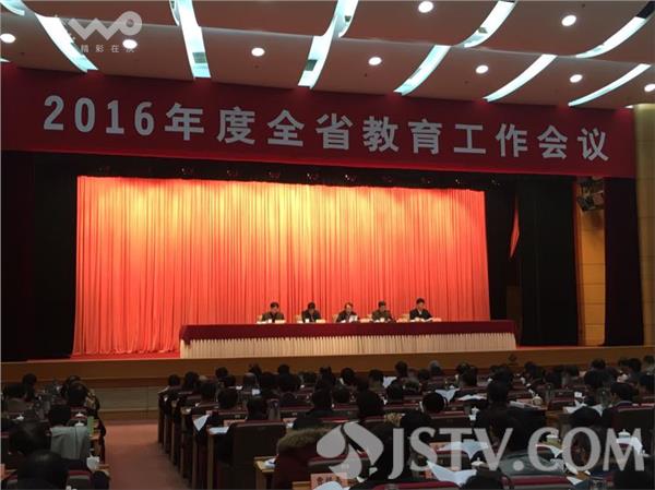 2016年江苏省教育工作会议,今天(1月22日)在南京召开。副省长曹卫星、 省教育厅厅长沈健等出席会议并讲话。会议强调,要全面贯彻落实党的十八大、十八届三中四中五中全会和习近平总书记系列重要讲话特别是视察江苏重要讲话精神,以及省委十二届十一次全会和全国教育工作会议精神,按照 “四个全面”战略布局,牢固树立和贯彻落实创新、协调、绿色、开放、共享的发展理念,全面贯彻党的教育方针,以教育现代化为统领,以立德树人为根本,以提高质量为核心,以促进公平为重点,以改革创新为动力,以服务经济社会发展为导向,着力完善终身教育体系,确保到2020年,全省教育整体水平和综合实力继续位居全国前列,实现省域教育现代化,建成学习型社会和人力资源强省。