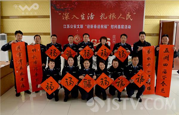 1月21日上午,江苏省公安厅文联副主席、秘书长、省公安美协主席许丽晴带领王冰川、李顺福、谢景行、汪海洋、张嗥等11位知名警营书画家来到淮安市公安局淮阴分局,给这里的基层民警和功模们送来了新春的祝福。