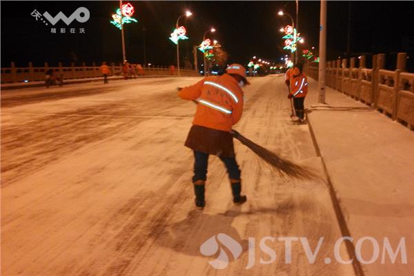 而在清浦大桥上环卫工人同样在铲雪,环卫工从出门到现在一直没歇着,据了解今天凌晨淮安城区所有的环卫工全部走上了自己平时的工作岗位,对城市重点的桥梁,学校,医院及各个主干道和十字路口全部彻底铲雪。