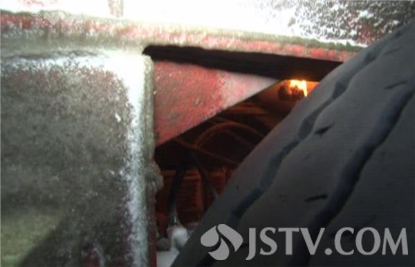 而在事故现场往南50米处,一辆红色半挂货车因为零下气温刹车管冻住了,司机无奈只有将铁丝缠着沾满柴油布条点燃对刹车管进行烘烤,据司机透露,从淮金公路开过来,路上至少有五六辆车横在路上都是因为刹车冻住失灵导致无法行驶。