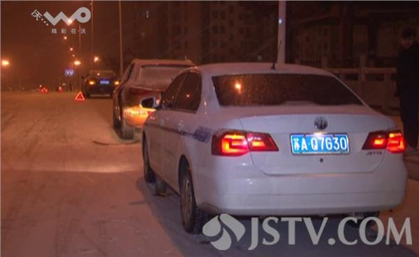 据现场太平保险公司理赔员透露,今晚已经出了三次车险都是与雪后路面结冰车辆刹车打滑所引发的事故。