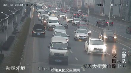 凤台南路高架(珍宝酒店上方)南向北、城西干道(集庆门隧道南向北、水西门-清凉门隧道南北双向)、中央北路和燕路北向南、宁丹路铁心桥南向北车多排队。