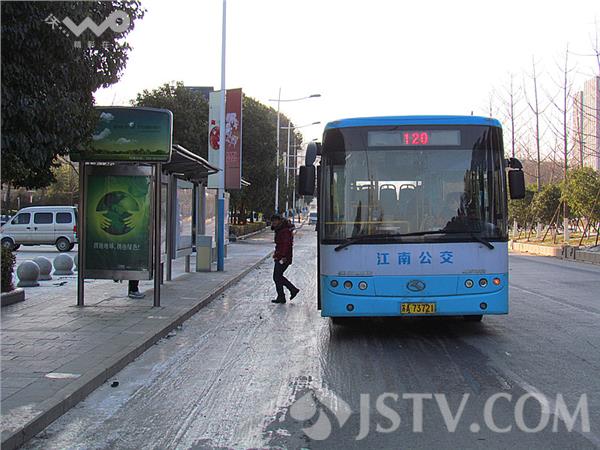 近日,南京遭遇“霸王级”寒潮,一场大雪随之而来。1月24日下午,徐先生路过软件大道(共青广场)公交车站,看到地面冻了一条几百米长的冰道,居民乘坐公交车不得不先“滑冰”,导致公交车无法正常进站,这让他们很担心,生怕一不小心滑倒摔伤,存在安全隐患。