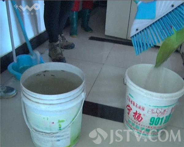 1月26日下午,市民张师傅报警,在浦口仁和苑21栋3楼,整个楼梯道和电梯里都是水,接警后警察不久赶到了现场,看到水是从一住户家里流出来的,门也打不开,物业张主任不久后联系上了业主,业主说在外地回不来,让他们想办法打开门看看情况。随后警察联系了开锁工何师傅,不久何师傅赶到现场并打开了门,这才发现屋里面全是水,脚一睬地板下水就冲了出来,地板都被泡在了水里。