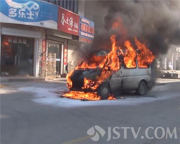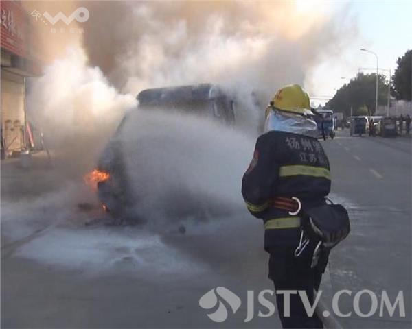 1月26日上午10点左右,扬州仪征市胥浦街道,一辆面包车行驶途中莫名冒烟起火,浓烟滚滚,司机及时停车逃生报警,躲过一劫。当地公安、消防部门接到报警,迅速赶赴现场,立即出水压制火势,禁止无关车辆人员靠近。由于起火部位在车头内部,水打不进去,消防队员拿来撬棍,撬开引擎盖,再往里面喷水。很快,车上明火被基本扑灭。
