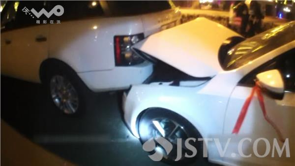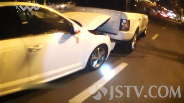 至于事故方面,路虎受损并不严重,但后面轿车的引擎盖已经被顶起来了,损失严重,而且被撞的是一辆刚买没几天的新车,后视镜上还绑着红丝带,行驶里程不到20公里。由于唐某酒驾,保险公司不负责对事故赔偿,但唐某表示,愿意买下这辆被他撞坏的车辆作为赔偿。