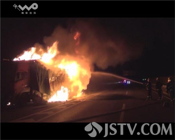 1月26日凌晨4时25分,位于徐州新沂市新扬高速南京方向7公里处一辆货车起火,接到报警后,新沂消防立即赶赴现场扑救。大约过了1个多小时,大火被全部扑灭。