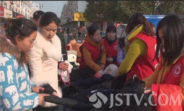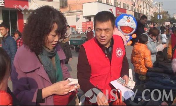 记者赶到响水县滨江路步行街时,身穿红马甲的志愿者们忙碌开了,几张桌子上面摆放着裤子,后面的衣架上挂着漂亮的棉衣,宝哥志愿服务队的志愿者宝哥正在用话筒向过往市民宣传,不少市民听了宣传之后,纷纷前来购买,甚至有的市民也不问价格,拿条裤子扔下百元大钞就走。市民刘益霞家的小孩已经大了,根本就穿不了这样的裤子,但她也买了两条,刘益霞告诉记者,虽然自家的孩子穿不了,但可以送给其他人家的孩子,献一点爱心吧。记者在现场看到,听到广播里的宣传,市民们纷纷停下了脚步,有的市民直接就将善款投进了募捐箱里,还有不少的想朋友将自己的零花钱也捐了出来。正在三轮车边上整理衣服的王女士告诉记者,她的公公在四年前因为食道癌开刀做了手术,花费了十多万块钱,自己也因为先天性心脏病做了搭桥,使原本就不富裕的家庭陷入了困境,为了家庭的生活,他老公外出打工,而她自己也靠摆地摊卖童装来贴补家用,今年元月初,她刚从外面进了一批童装回来,老公却被查出肝癌晚期,无奈之下,只得将这些童装保本抛售,尽快筹集治疗费用,将老公送到医院去治疗。