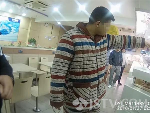 27号凌晨2点多,徐州市王陵派出所民警接到报警称,辖区内的双七快餐内,一男子正在发酒疯,民警立刻出警。店内员工说,他们快打烊的时候,醉酒男子突然从店外进来,他嘴巴特别脏,一直在辱骂他们和这位顾客。