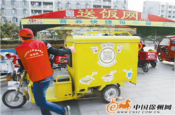 走进位于矿大模拟创业园的送饭网办公室,只见玻璃门上贴着一个造型可爱的胖娃娃,一只手托着一碗米饭。“这是我们矿大学生自己设计的图标,我们还有统一设计的红色送饭服、帽子。”学生老板陈鑫告诉记者,为了加快配送速度,他们特地购买了20辆电动车,还有20个保温箱。