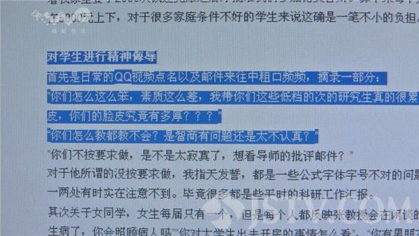 而帖子中还爆出其导师张代远的七宗罪。包括克扣学生交通补贴、要求学生上缴实习工资、对学生进行精神侮辱、甚至性骚扰女学生等。而这篇帖子引起了巨大反响。