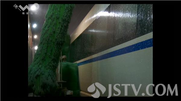 洗车要经过预湿、喷药环节,然后各种大小刷头启动,对车身的不同部位进行洗刷。