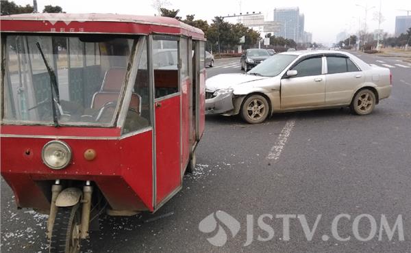 1月30日下午1点左右,淮安市北京南路上发生一起交通事故,一老人骑着电动三轮车行驶在快车道上,在通过一个新建道路路口时突然与一辆左转弯车辆发生相撞,老人遭撞击受伤,随后被轿车司机家人送入附近医院检查。