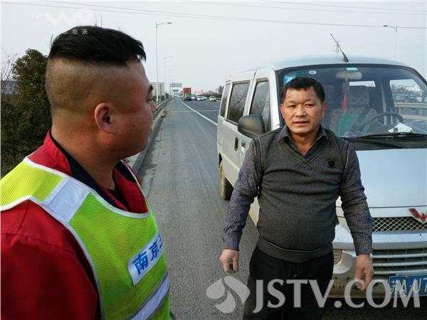 司机姓朱,面对车辆抛锚的窘境,只能推着车慢慢地向前。桥面上,一辆一辆车飞快地向前,看着朱师傅这样推着车,让人真感觉不太安全。江面上寒风阵阵,可朱师傅满头大汗。二桥监控中心工作人员看到朱师傅在桥面推车,派了一辆清障车来拖车。一位穿着“南京三盟”工作服的男子对朱师傅说:“拖车费用起步是200元,另加1公里8元。”听说拖车这么贵,朱师傅不愿意花钱,对前来拖车的男子说,还是自己推着走吧。看到朱师傅不肯让自己拖车离开,前来拖车的男子说:“我随便你,你不肯让我拖,你这样推着,收费站那全是交警,他们肯定能够看到你,你这样,罚款200元,记6分。”