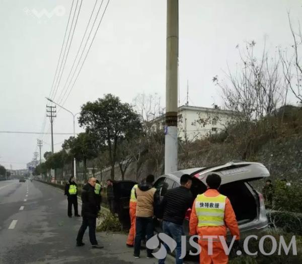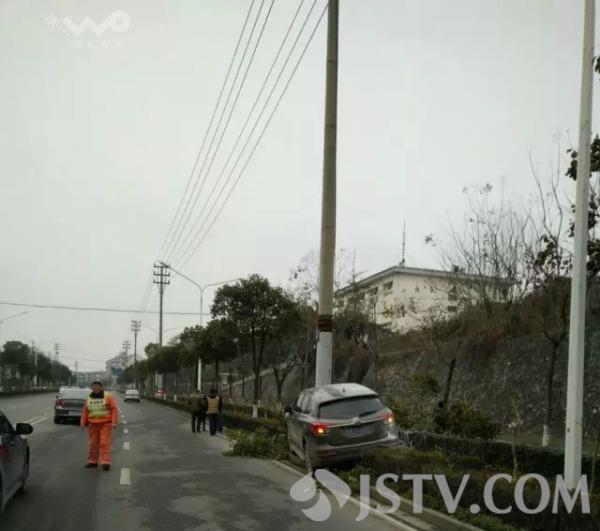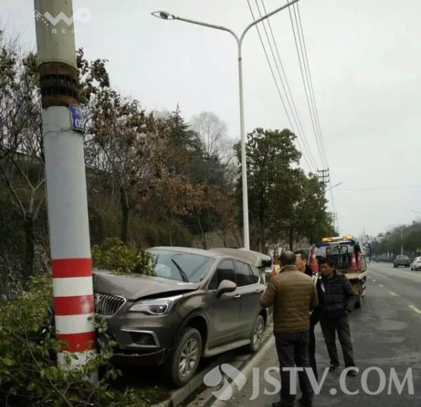 昨天上午(1月30日),在南京市六合区旭东路上发生一起单方交通事故,一辆别克轿车撞上路边的绿岛上,将一颗直径20公分的绿化树撞断,顶到绿岛中心的高压电线杆子才停下来。两个安全气囊全部打开,驾驶员和副驾驶受轻伤。