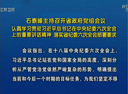 1月30日下午,省长、省政府党组书记石泰峰主持召开省政府党组会议,认真学习贯彻习近平总书记在中央纪委六次全会上的重要讲话精神,落实省纪委六次全会部署要求。会议强调,要切实把思想和行动统一到习近平总书记重要讲话精神上来,牢固树立看齐意识,全面加强纪律建设,持之以恒反"四风"、正党风、反腐败、倡清廉,为做好政府各项工作提供坚强有力的保证。