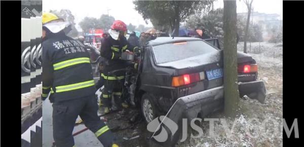 雪天路滑,易发交通事故。1月31日下午两点30分左右,扬州地区突降大雪,西屏山以东路段就发生一幕惨剧,一辆环卫车紧急避让三轮车,雪天路滑,刹车不及,与一辆轿车相撞,轿车司机被卡。当地公安、消防、120急救部门立即前往救援。不幸的是,该司机身亡。