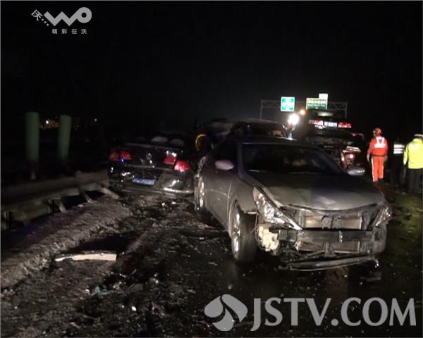 1月31日下午天空下着鹅毛大雪,下午5点左右盐城市高速交警一大队报警不断,原来下雪过后气温骤然下降高速公路上严重结冰,就在G15沈海高速大丰服务区南边和北边发生了多起汽车追尾的事故。现场多人受伤,还有一辆大巴车也骑在公路的隔离栏上。对受伤的驾乘人员民警立即通知120迅速到达现场,对受伤人员进行紧急处置并送往大丰区人民医抢救治疗,据第一辆事故车驾驶员介绍,当时由于路上结冰,也不知道桥面滑车子就撞到护栏然后在路上转了一圈才停了下来,后面的车就接二连三的都撞上了。