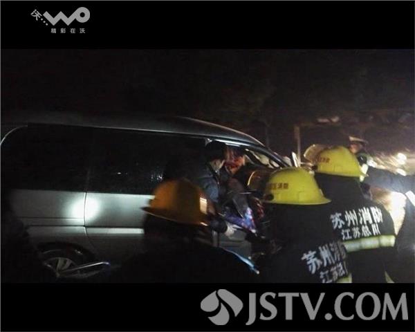 1月31日22时30分,苏州市吴淞江车坊大桥墩处发,一辆面包车撞上了吴淞江车坊大桥限宽石墩,车头严重变形,副驾驶被困在驾驶室内无法动弹,车内全是刺鼻的酒味,且乘客满脸是血,处于昏迷状态,司机未受伤。消防队员进入车内将受伤乘客抱出,并送上救护车送往医院进行急救。 经询问交警得知,由于当时天黑下雪,驾驶员喝了大量酒开车,车速过快撞上了大桥限宽桥墩,且该驾驶员无驾驶证。