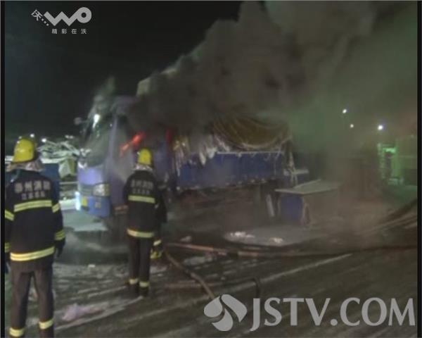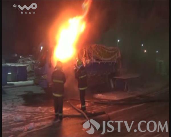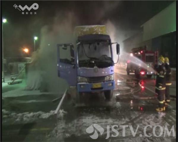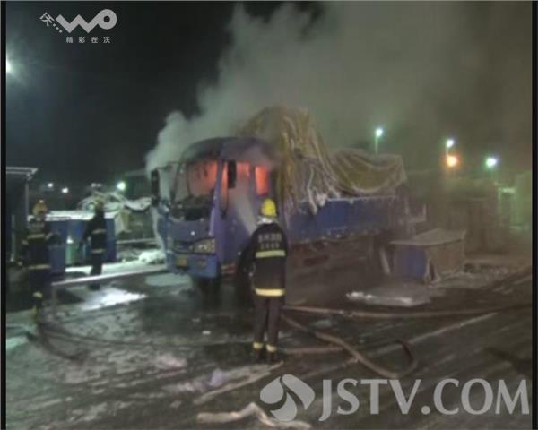 2月1日凌晨1时许,泰州市姜堰区119指挥中心接到报警,称姜堰区东转盘附近曹安批发市场内一辆运水果的卡车车头冒烟起火。接到报警后,当地消防立即调派警力赶赴现场处置。