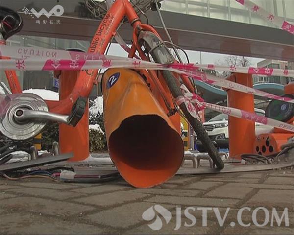 居民们反映的公共自行车站点位于康盛家园小区门口,记者发现,站点好几只电桩已经损坏倒地,一辆公共自行车车身变形,无法骑行。虽然现场已经拉起警戒线,但毁坏的电桩断口锋利,给步行经过的居民埋下了安全隐患。南京市公共自行车管理公司表示,宁南小区站点的损毁,是一月上旬的一起面包车撞击站点事故导致的。因为被毁坏的车辆设施多,涉及赔偿金额大,后续维修工作被推迟了。目前,站点的理赔工作已经初步完结,总的车辆设备损失高达1万4千元,南京公共自行车管理公司称将在本周完成对站点的最终清理修缮。公共自行车管理公司提醒,公共自行车既方便了市民出行,更是展示南京文明形象的窗口,希望大家都能爱护车辆,仔细使用。