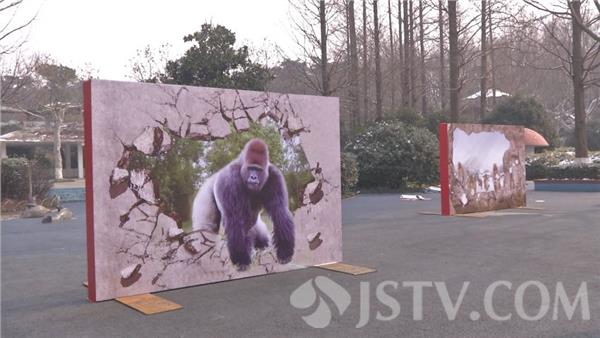 今天(2月2日)上午,荔枝新闻记者在红山动物园发现,工作人员动物园中心广场正在布置猴年猴子主题的3D画展牌,现场已经大部分布置完毕。