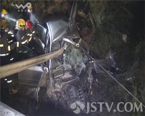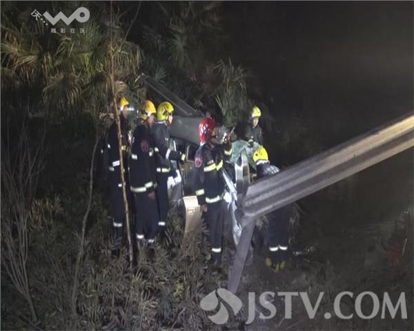 2月3日凌晨0点左右,S336省道扬州市江都区曹王段转弯口附近,发生一幕惨剧,一辆轿车突然失控,冲下路坡,驾驶室变形,被护栏刺穿,司机和副驾驶被困,后座一女子受伤。当地交警、消防、120急救等部门接警,立即赶往现场救援,将伤者救出。不幸的是,司机和副驾驶已经身亡。据轿车后座的女子介绍,他们准备回家,驾驶员是她丈夫,不知何故,轿车突然冲下公路,女子坐在后排,感觉气喘不过来,清醒过来,赶紧打电话报警。随后,消防队员钻进车内,清理空间,使被困司机身体躺平,小心翼翼抬出,送回路面,医护人员立即对伤者进行检查抢救。伤者随后被送往医院治疗抢救。不幸的是,司机和副驾驶男子因伤势过重身亡。目前,事故原因正在调查中。车祸猛于虎。在此提醒广大司机,春节来临,为了您和家人的安全,开车上路,一定要安全驾驶,以免发生事故。