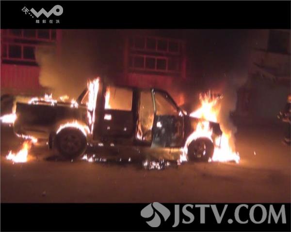 2月2日18时53分,位于徐州新沂市新港商贸城南大门门口一辆皮卡起火,火势很大。新沂消防中队立即赶赴现场灭火,由于车子着火的地方是在外环上,在路的远处就能看到车子燃烧的熊熊火焰。