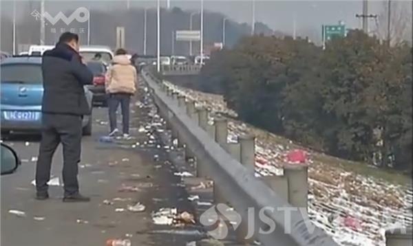 春节临近,部分企业已经放假,高速公路车流量越来越大了,昨天宁洛高速更是堵车50公里到南京二桥。由于堵车高速路边产生了大量的生活垃圾,给清洁工人带来了很大的工作压力,一位清洁工对笔者说;驾乘人员根本不听劝说,产生的生活垃圾随意丢放,他们感到很无奈。唯一的就是希望驾乘人员能提高一点个人素质,增强交通安全意识,产生的垃圾不要随便抛出窗外。警方也提醒驾驶员朋友,垃圾随便丢的窗外不但污染环境,而且很容易引发交通事故,平时车子里面可以放一个垃圾袋,产生的垃圾随车带走,这样对自己对别人都有利。