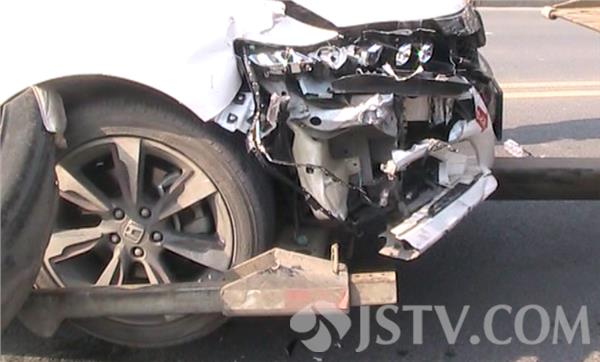 2月2日中午11点左右,淮安市北京南路上发生惊险一幕,一名新手司机驾驶本田轿车超速撞飞前方左转弯别克轿车,现场看到别克轿车右后车轮直接被撞断,整个后车保险杠被撞脱落,而肇事的本田轿车右前车头部位严重受损,整个右侧车灯被撞爆,前车轴断裂,由于双方避让及时索性没有造成人员伤亡。