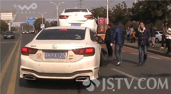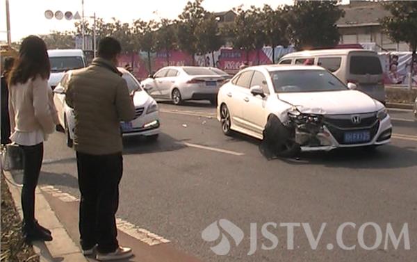 现场由于发生事故后四股车道被占据了两股车道,许多由南往北行驶的机动车不得不变道绕行,通过别克车主透露,当时别克轿车由北往南左转弯向东,对方本田轿车车速冲了过来急刹车,如果左转弯再慢一点的话,很可能车内人员就要受伤。