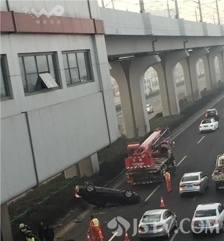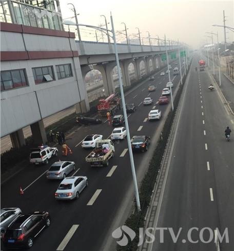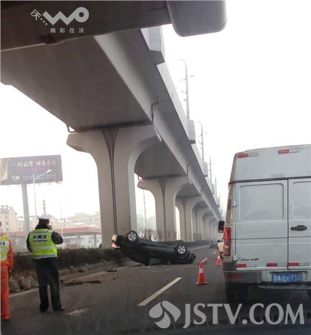 今天(2月3日)上午,在南京江北大道卸甲甸地铁站附近,发生一起单方面交通事故。一辆小轿车四脚朝天翻在路中间,损坏严重,幸好驾驶员只是受点轻伤。据当事人讲:由于跟在前面车子比较近,行驶中点了一下刹车,突然车子就侧翻了,可能与路内侧结冰有关。具体事故原因警方正在调查,警方提醒驾驶员朋友,高速上行驶一定要时刻观察路况情况,和前车之间必须保持一定的安全距离,避免刹车不及引发交通事故。